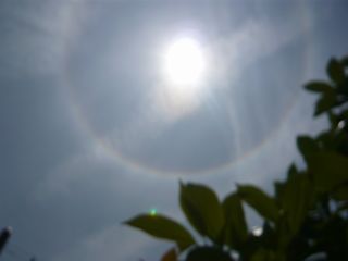 お昼頃、空を見上げると太陽のまわりに